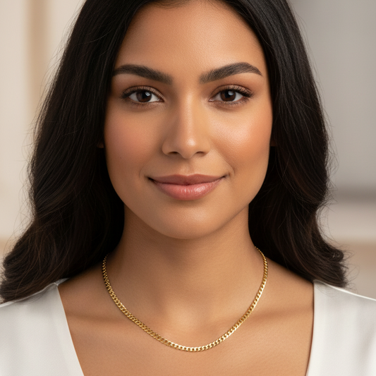10k Gold 2mm Flat Curb Chain + charm 18"
