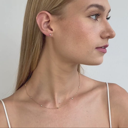 14k Tiny CZ Encrusted Star Baby Necklace, size 16"