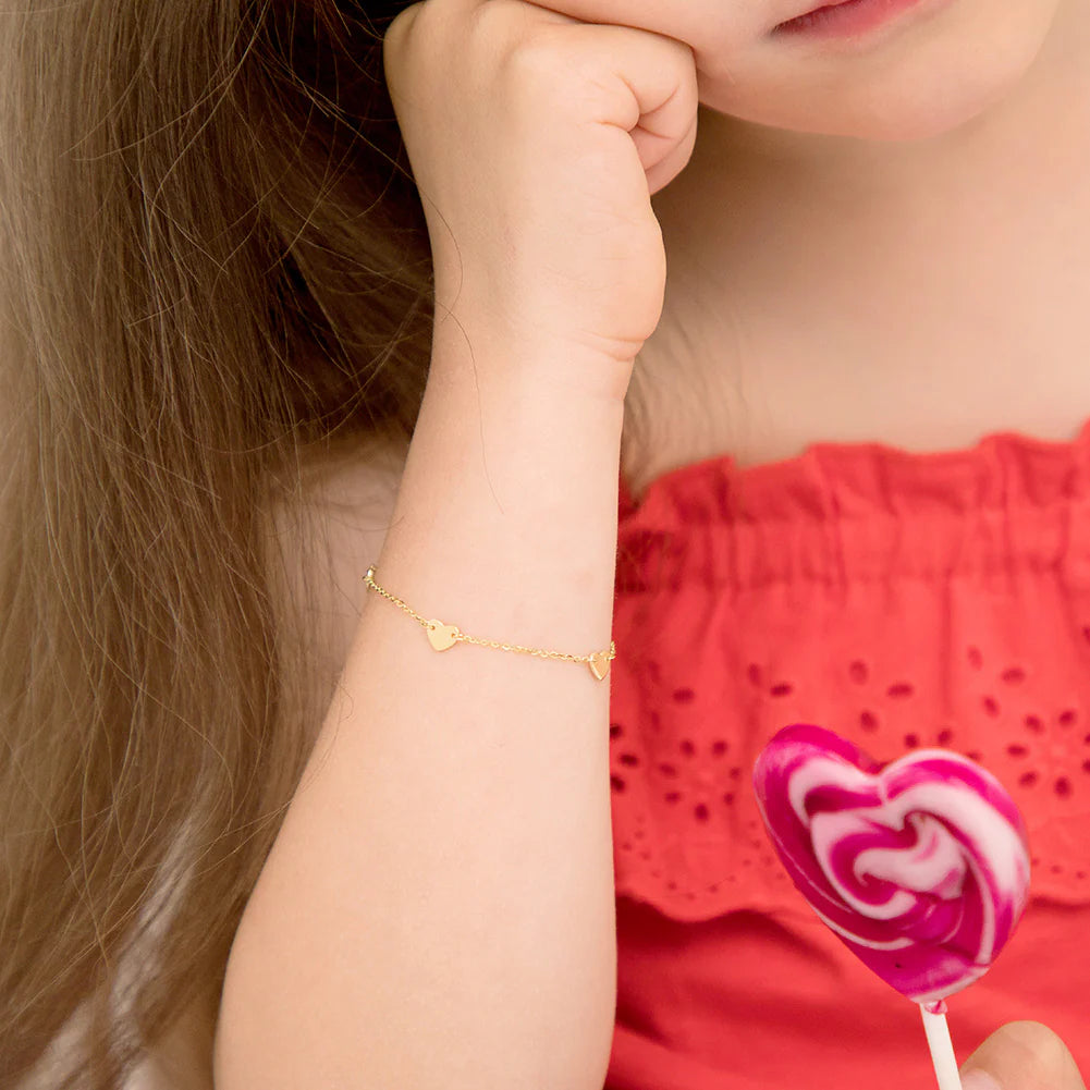 14k Puffed Heart Little Girls Bracelet 5" to 6"