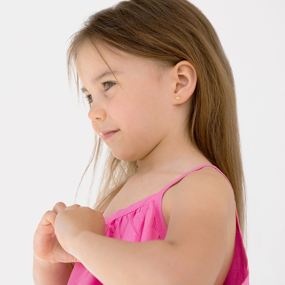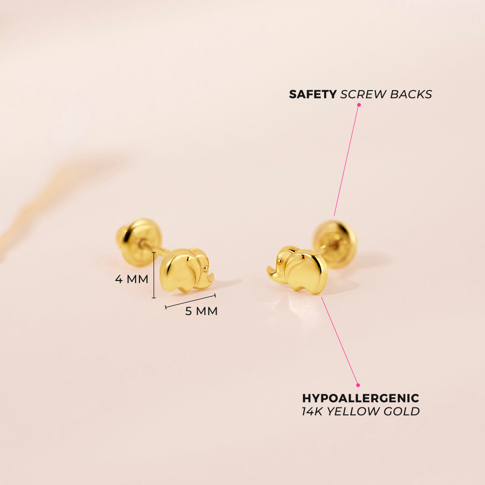 Elephants symbolize good luck, wisdom and serenity. These tiny elephant 14k yellow gold screw back earrings are adorable and charming for your pretty witty little girl. This good luck earrings for kids are a great gift idea for your little animal lovers. These beautiful earrings have kid friendly screw backs to ensure the earrings will stay safely in place all day and night. Beautifully crafted in 14k yellow gold, making it suitable for little girls with sensitive earlobes.