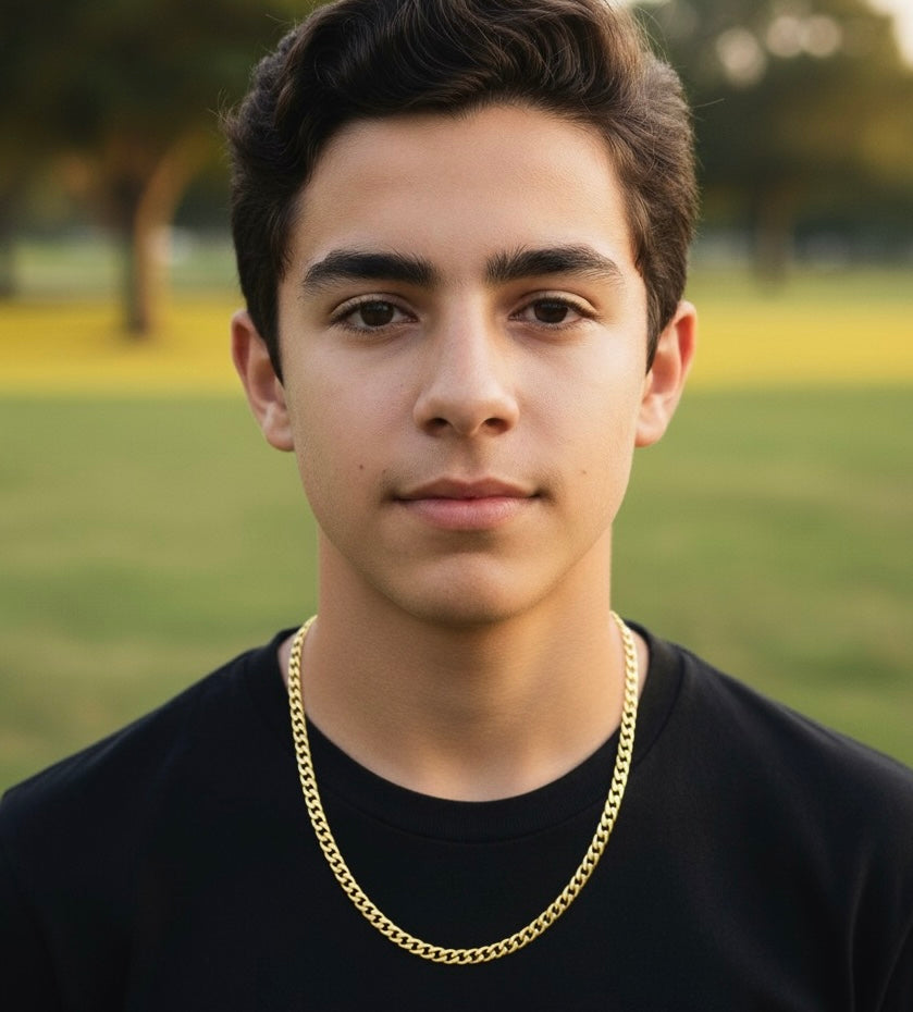 This 10k Gold 5mm Flat Curb Chain made in Italy, measuring 22 inches, offers a versatile and stylish accessory suitable for teenagers, women and men. Its flat curb design provides a sleek, comfortable fit, making it perfect for everyday wear or special occasions. Durable and timeless, this chain complements any outfit with a subtle touch of elegance.