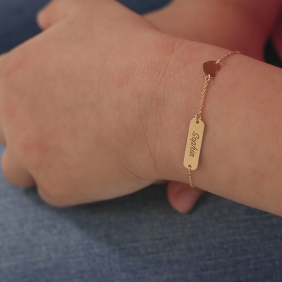 14k Heart Charm Tag ID Girls Bracelet 5" to 6"