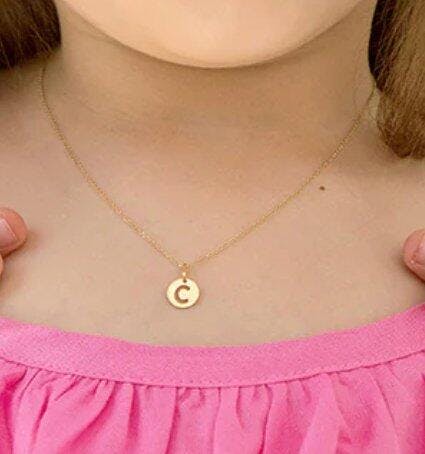 14k Initial Letter Charm Girls Necklace